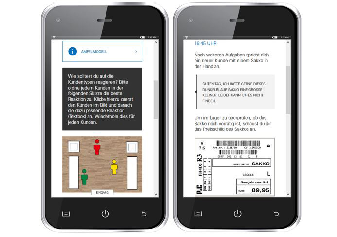 Der mobiloptimierte P&C-Praxis-Check gibt Interessierten realistische Einblicke in den Berufsalltag und die typischen Aufgaben von Auszubildenden bei P&C. So kann man auf spielerisch-simulative Art herausfinden, welcher Berufseinstieg bei P&C der Passende ist. Abgebildet werden die folgenden zwei Berufe: